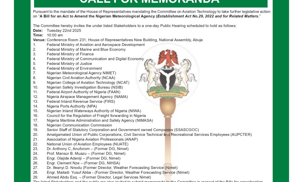 The Nigerian Meteorological Agency (NiMet), has urged the National Assembly to amend its establishment Act to empower the Agency recover service charges as well as enhance...
